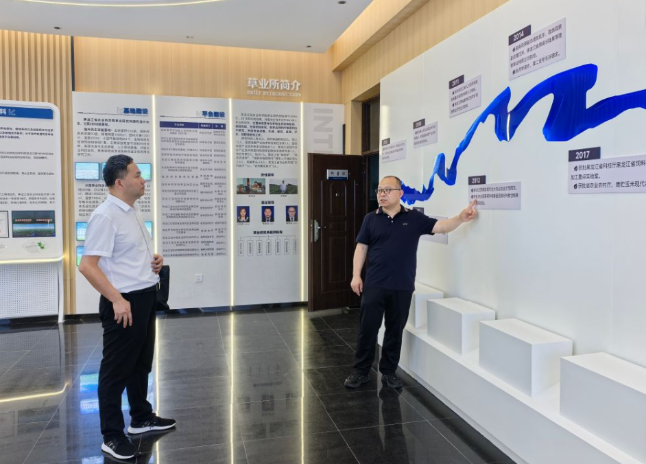在黑龙江省农业科学院草业研究所所长韩微波的陪同下,方正武一行先后参观了研究所重点实验室、种质资源库及寒地草业科研示范基地,详细了解了该所在耐寒草品种选育、退化草地生态修复、草产品加工等领域的突出科研成果与产业化应用成效。方正武对研究所立足国家粮食安全与生态安全战略需求,扎根寒地草业科研数十载所取得的丰硕成果表示高度赞赏。