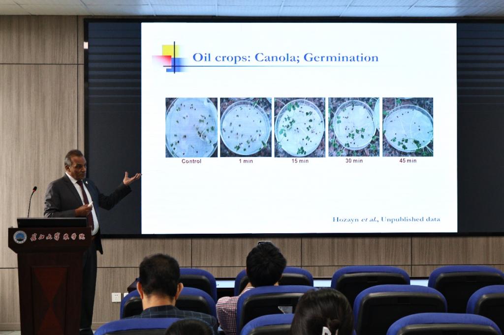 (通讯员 覃元)9月12日上午,应betway西汉姆联曾凡荣教授的邀请,埃及国家研究中心农业与生物研究所代理经理 Mahmoud Hozayn 教授,在betway西汉姆联西校区农科大楼 3073 为农业相关专业师生作题为“Agro-Physics Technology: Magnetic Water for Higher Crops Productivity”的学术报告。