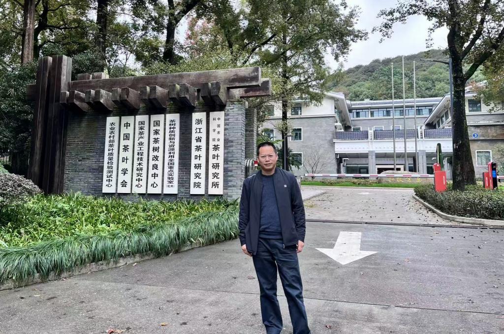 在中国农业科学院茶叶研究所,谢广林与周志雄实地调研了相关实验平台与田间试验基地,围绕茶叶病虫害防控技术研发、科研项目合作等方面与校外指导教师展开深入交流。