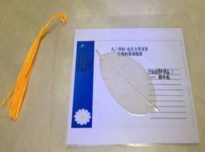 训练营成员分组认真指导员工清洗树叶、分离叶脉。经过将近半个小时的努力,所有同学都成功地梳理出叶脉,训练营成员给所有叶脉都进行了染色和过塑,一枚枚漂亮又独具个人特色的书签制作完成了。