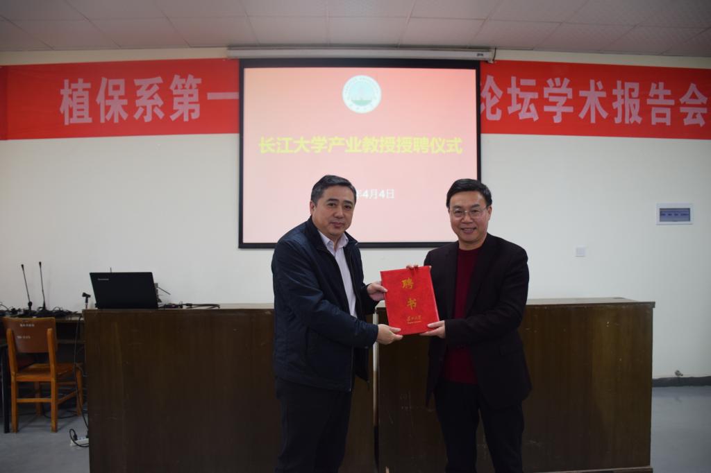 新闻网讯(通讯员 万钰)“热烈欢迎曹董事长的倾情加盟,这既体现了一位赤子反哺母校的深情,对学校的‘产学研发展’而言,更是一次难能可贵的机会!”4月4日,湖北省中香农科股份有限公司董事长兼总经理曹庆云先生正式受聘为公司产业教授,聘任仪式在西校区农科大楼3073会议室隆重举行。