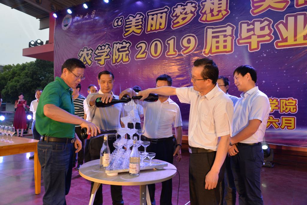晚上七时许,餐会正式开始,学校相关职能部门负责人与betway西汉姆联老师们,一同为2019届毕业生送上真挚的祝福。“感恩的心•眷念的情”赠言签名活动中,老师和同学们纷纷走向台前,在留言板前长久驻足,提笔写下满腔深情;“梦想启航•助力放飞”环节里,500余个氢气球承载着师生们的梦想,飞向了遥远、蔚蓝的天际;香槟开启仪式上,师生们斟满祝福,为“长大长新、乡村振兴、国家复兴”共同举杯。