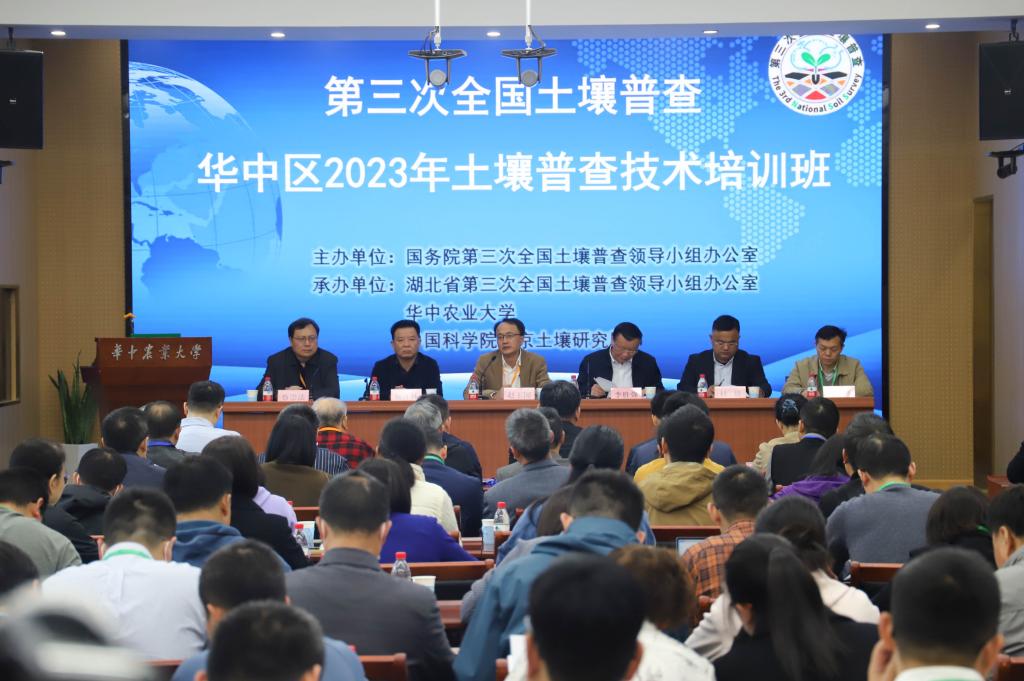 据悉,本次培训由国务院第三次全国土壤普查领导小组办公室主办,湖北省三普办、华中农业大学、中国科学院南京土壤研究所承办,来自江西、湖南、湖北、广东四省土壤普查工作及技术人员100余人参加了培训。全国土壤普查办外业技术组组长、中国科学院南京土壤研究所研究员赵玉国,湖北省土壤普查办主任、湖北省农业农村厅副厅级领导李胜强,华中农业大学党委副书记、副董事长姚江林等出席开班仪式。