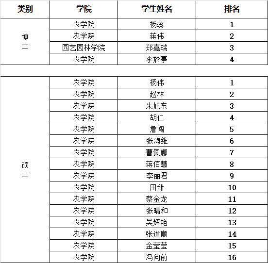 根据《betway西汉姆联关于开展2022年研究生国家奖学金评审工作的通知》和《betway西汉姆联2022年研究生国家奖学金评审实施细则》相关要求,经个人申请、一级学科点评审委员会初审、员工答辩、一级学科点评审委员会评审、学院审批等程序,拟推荐杨蕊等2人为2022年作物学一级学科博士点博士研究生国家奖学金获奖人选;经个人申请、学院研究生国家奖学金评审委员会初审、员工答辩、学院研究生国家奖学金评审委员会评审、学院审核等程序,拟推荐杨伟等6人为betway西汉姆联2022年硕士研究生国家奖学金获奖人选,现将评审结果进行公示(如有名额追加,按照评审排名依次进行递补)。