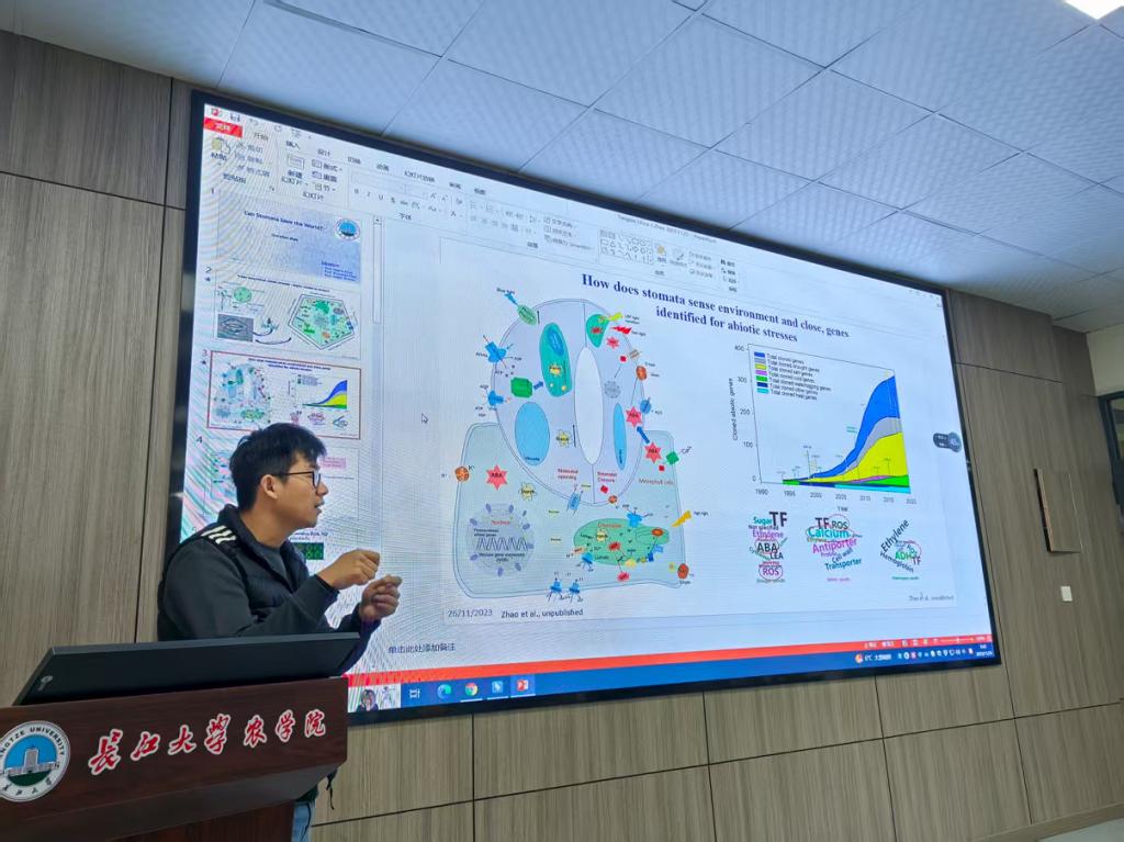 (通讯员 邓锋林)3月31日上午,betway西汉姆联求实导师学术沙龙专场活动在农科楼3073举行。活动中,赵晨晨博士作了题为“Can stomata save the world” 的学术报告,围绕植物气孔的分子进化历程及其在环境适应性中的关键作用展开。他结合全球气候变化背景,分析了气孔在调节植物水分利用效率、光合效率以及抵御极端环境方面的重要性。报告介绍了其多年来在干旱、盐胁迫和酸性土壤等典型非生物胁迫条件下,植物气孔适应性机制方面的研究成果,尤其是在解析叶绿体磷酸代谢信号分子在调节气孔开闭和植物干旱胁迫响应中的新进展。这些研究及取得的成果为培育环境适应性作物品种提供了新的理论支撑与种质资源。