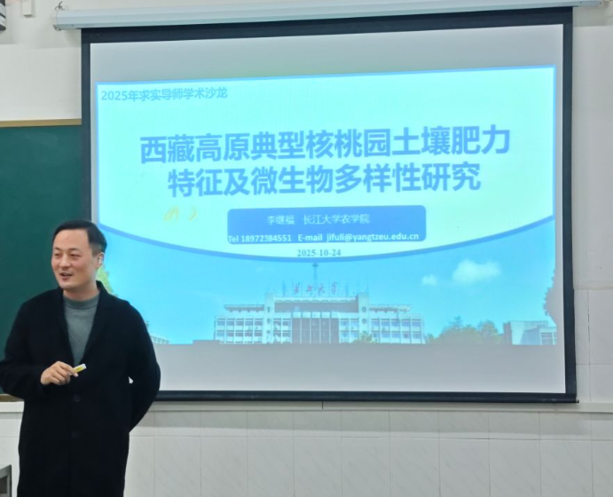 李继福副教授围绕《高原核桃园土壤肥力》展开专题讲座。以西藏“千年核桃之乡”山南市加查县为核心研究区,针对青藏高原核桃园土壤肥力与微生物多样性系统性研究匮乏、园地地力评价体系薄弱等关键科学问题,探讨高原特色作物种植的科学管理解决方案。研究选取加查县典型核桃园作为研究对象,覆盖3112-3550米海拔梯度,囊括冲积物、残积物等不同土壤母质,以及石灰性冲积土、山地草甸土等多种土壤类型;同时以青稞地、油菜地、冬小麦地等传统农地为对照,系统探究青藏高原不同农地的土壤肥力特征、植物养分状况以及微生物群落结构与功能差异。相关研究成果已在《Agronomy》、《Land》等期刊发表,不仅为西藏高原核桃园的精准养分管理、土壤质量提升提供了坚实的理论支撑,更为基于微生物调控的氮循环优化、高原核桃产业可持续发展提供了科学依据,对推动高原特色农业生态系统研究具有重要参考价值。
