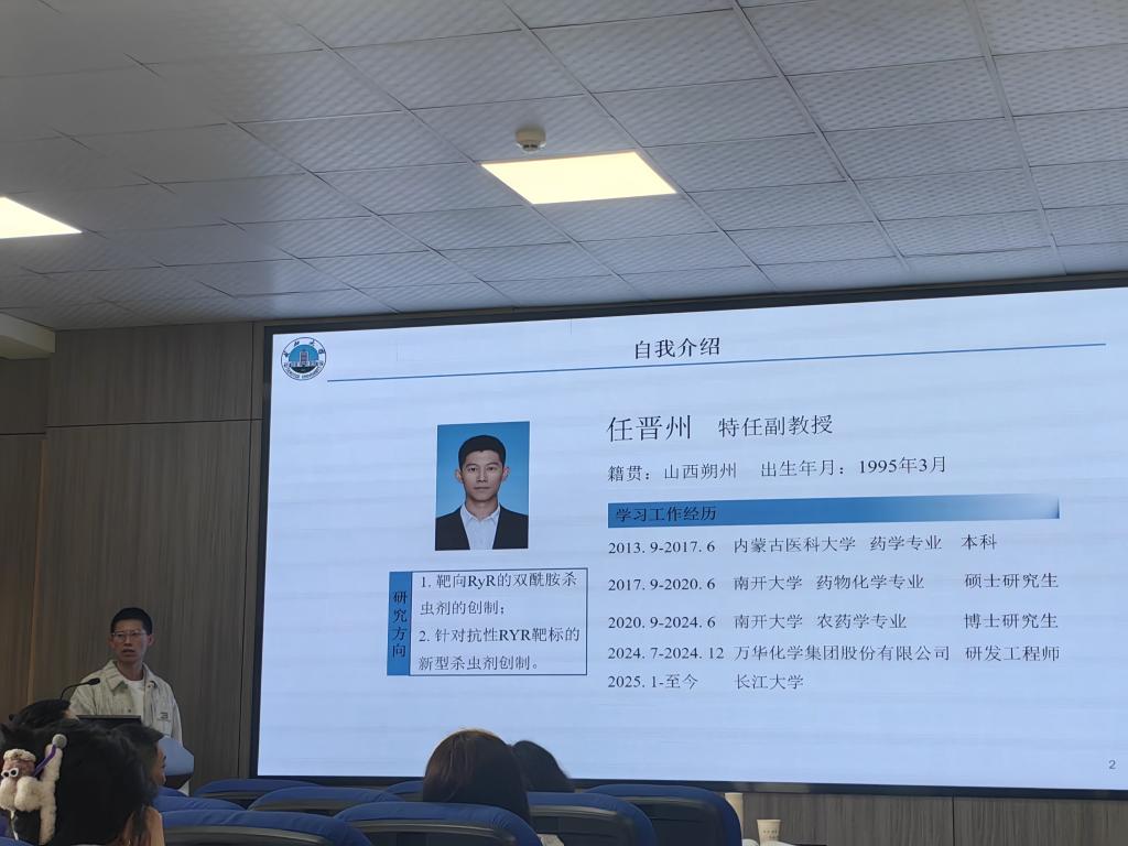 沙龙上,李俊凯教授介绍了课题组发现的高效杀菌候选物,其韧皮部传导性及杀菌活性超越阳性对照,展现出广阔的应用前景;杜晓英教授结合田间药效试验案例,强调了生测数据的重要性,帮助员工深入理解实践研究的价值;徐志红副教授和朱祥副教授从不同角度阐释了新农药创制的多样性,拓宽了师生的科研视野;张小磊副教授分析了荆州市周边地区杀虫剂抗药性现状,呼吁科学合理用药;任晋州副教授系统讲解了新型杀虫靶标鱼尼丁受体及双酰胺类杀虫剂的研究进展,为相关领域提供了新思路。