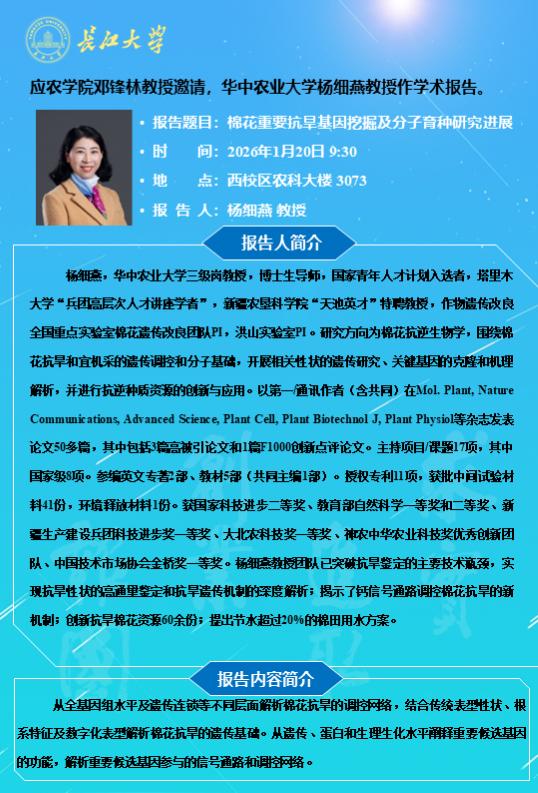 betway西汉姆联2026年学术报告(一):棉花重要抗旱基因挖掘及分子育种研究进展