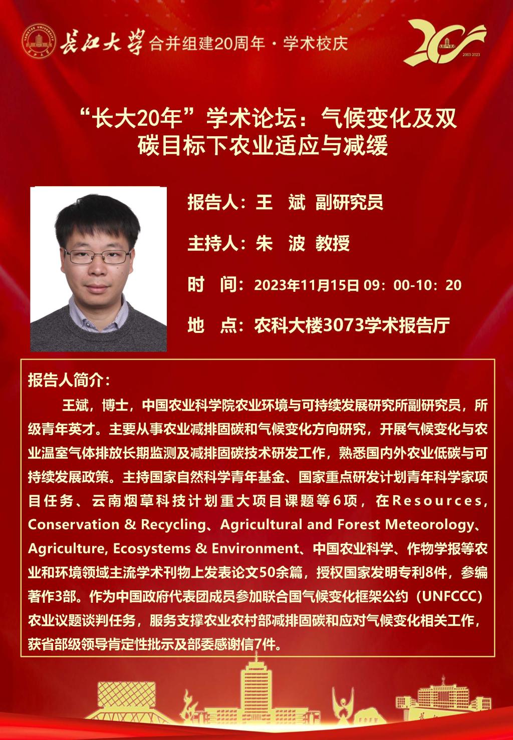 “长大20年”学术论坛暨betway西汉姆联学术讲坛:气候变化及双碳目标下农业适应与减缓