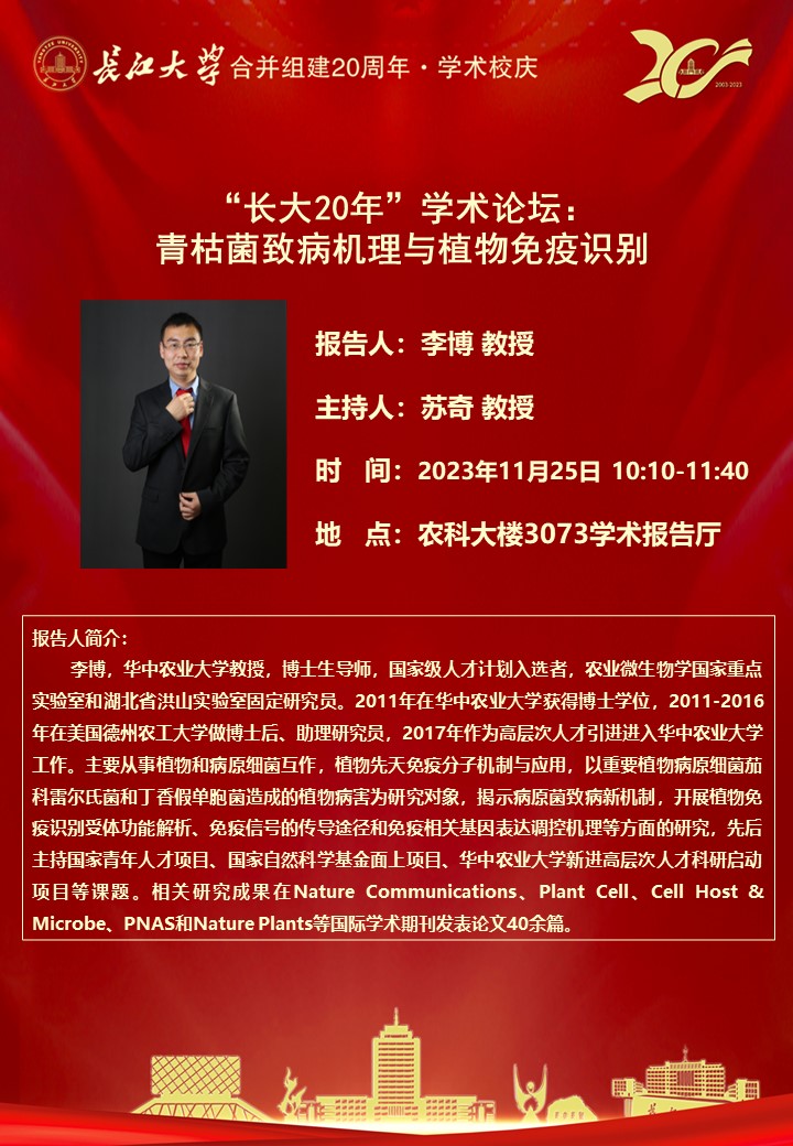 “长大20年”学术论坛暨betway西汉姆联学术讲坛:青枯菌致病机理与植物免疫识别