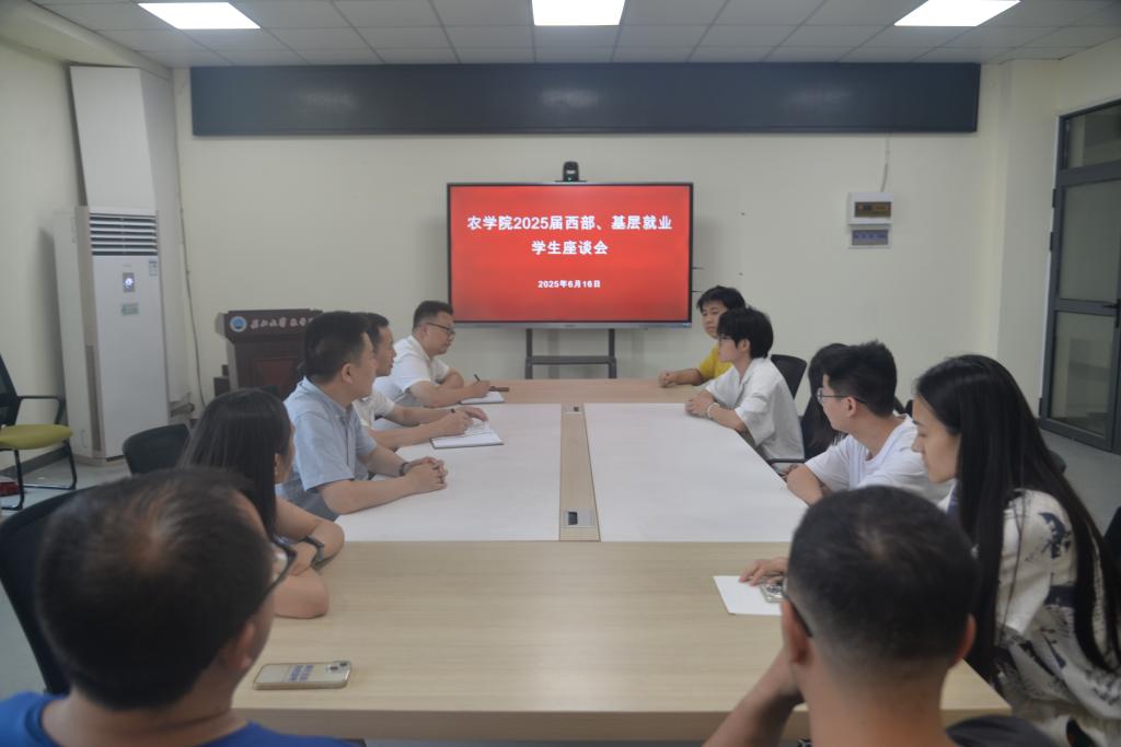 与会毕业生代表围绕基层就业的认知与规划展开深入交流,从专业应用、职业发展、社会价值等维度分享对西部基层工作的思考。他们表示,将以学院人才培养体系中积淀的实践能力为基,在农技推广、乡村治理、产业帮扶等岗位中践行农学使命,将课堂所学转化为服务乡村振兴的具体行动。周锦华认真听取发言后强调,基层工作虽需直面挑战,却是丈量人生价值的重要标尺,唯有扎根土地方能读懂农业发展脉搏,鼓励学子以院训精神为引领,在边疆基层书写新时代青年的责任担当。