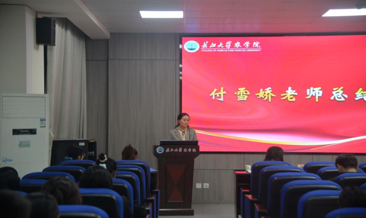 答辩最后,付雪娇老师作总结发言,她表示,本次答辩的意义就是要在全体员工中选典型、树标杆、立榜样,她激励广大青年学子要厚植爱农情怀、练就兴农本领,以脚踏实地的干劲、厚德笃行的担当,践行“厚德笃行 丰食天下”的院训,争做时代新农人。