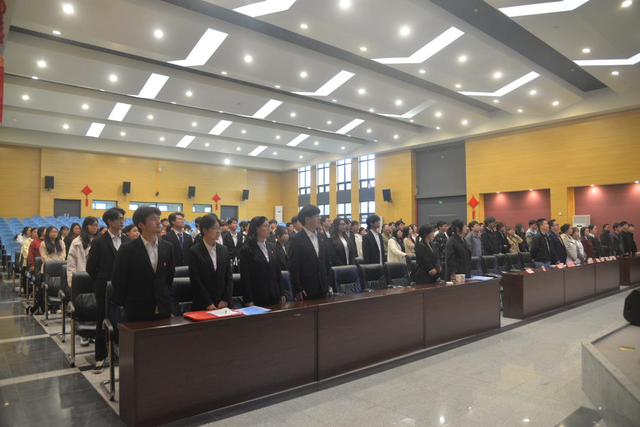党委副书记尹小华老师发表讲话,总结学院学科竞赛、“三下乡”等工作成果,希望新成员做好师生桥梁与榜样,严守安全责任。他强调员工干部要立足服务、锤炼本领、勇于担当,为betway西汉姆联发展贡献青春力量。最后,全体成员起立合唱校歌,宣告大会圆满结束。