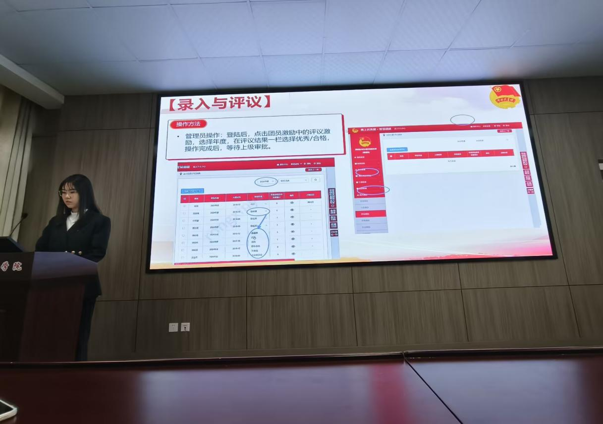 培训伊始,袁瑞雪系统讲解了团支部的基本职责与工作规范,重点解读了“三会两制一课”制度的具体要求。其余内容还包括团员发展流程、团费收缴标准、智慧团建系统录入与评议等基础团务工作,以帮助新任团干部快速掌握工作要领,明确岗位责任。