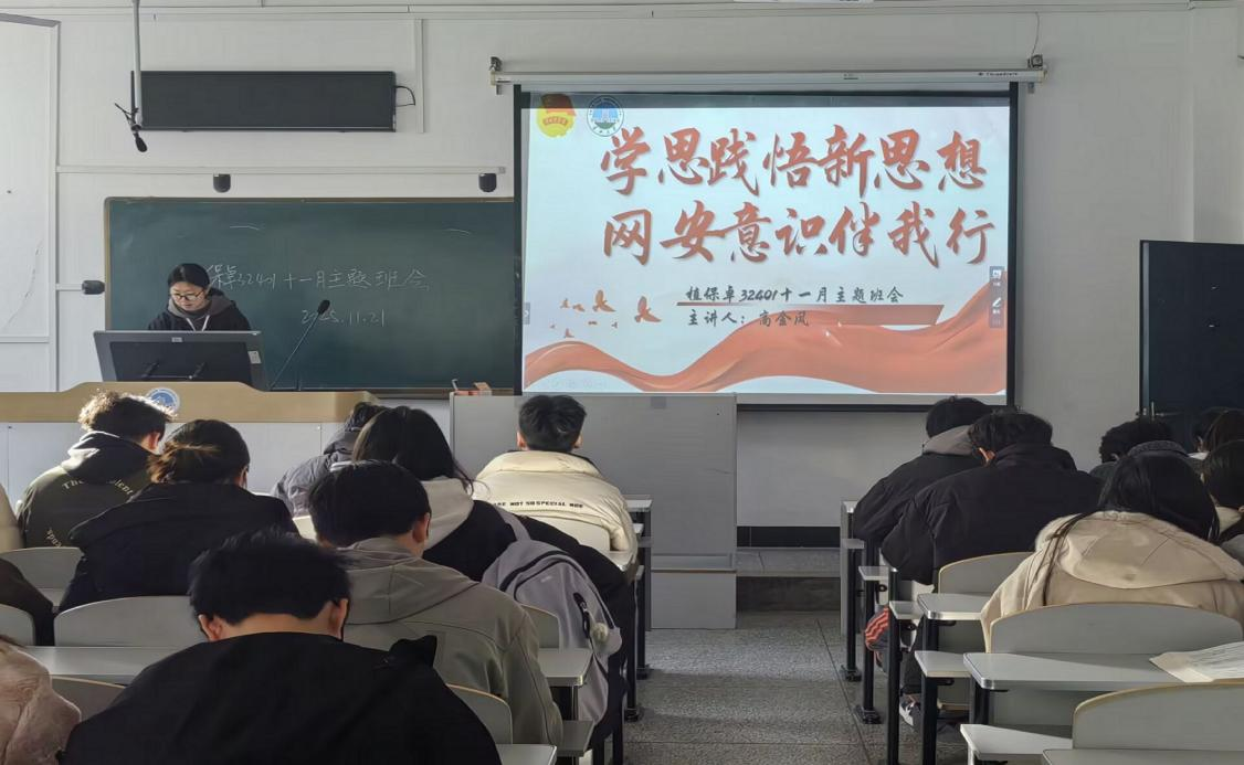 11月21日,团支部副书记高金凤带领植保卓32401班在7教303开展团会活动,她策划“学思践悟”系列活动,通过开展网络安全知识竞赛、撰写全会精神践行心得等形式,将理论学习与实践行动相结合。团员们在竞赛比拼与心得阅读中,深化对全会精神与时代使命的理解,筑牢网络安全意识,决心以实际行动守护网络清朗,让全会精神在网安实践中落地生根。