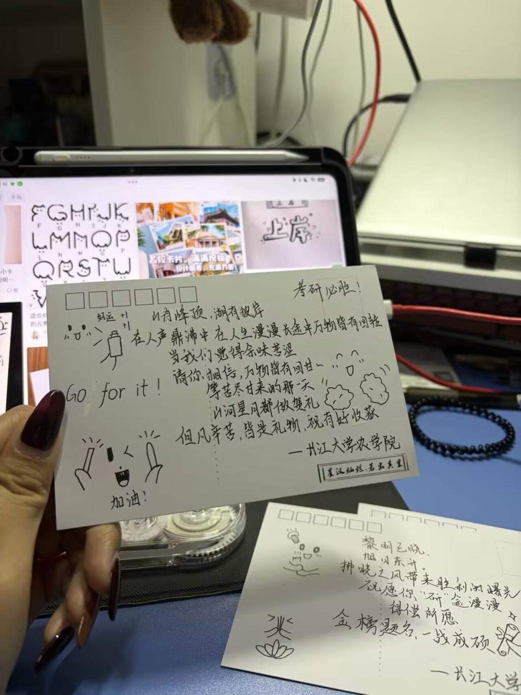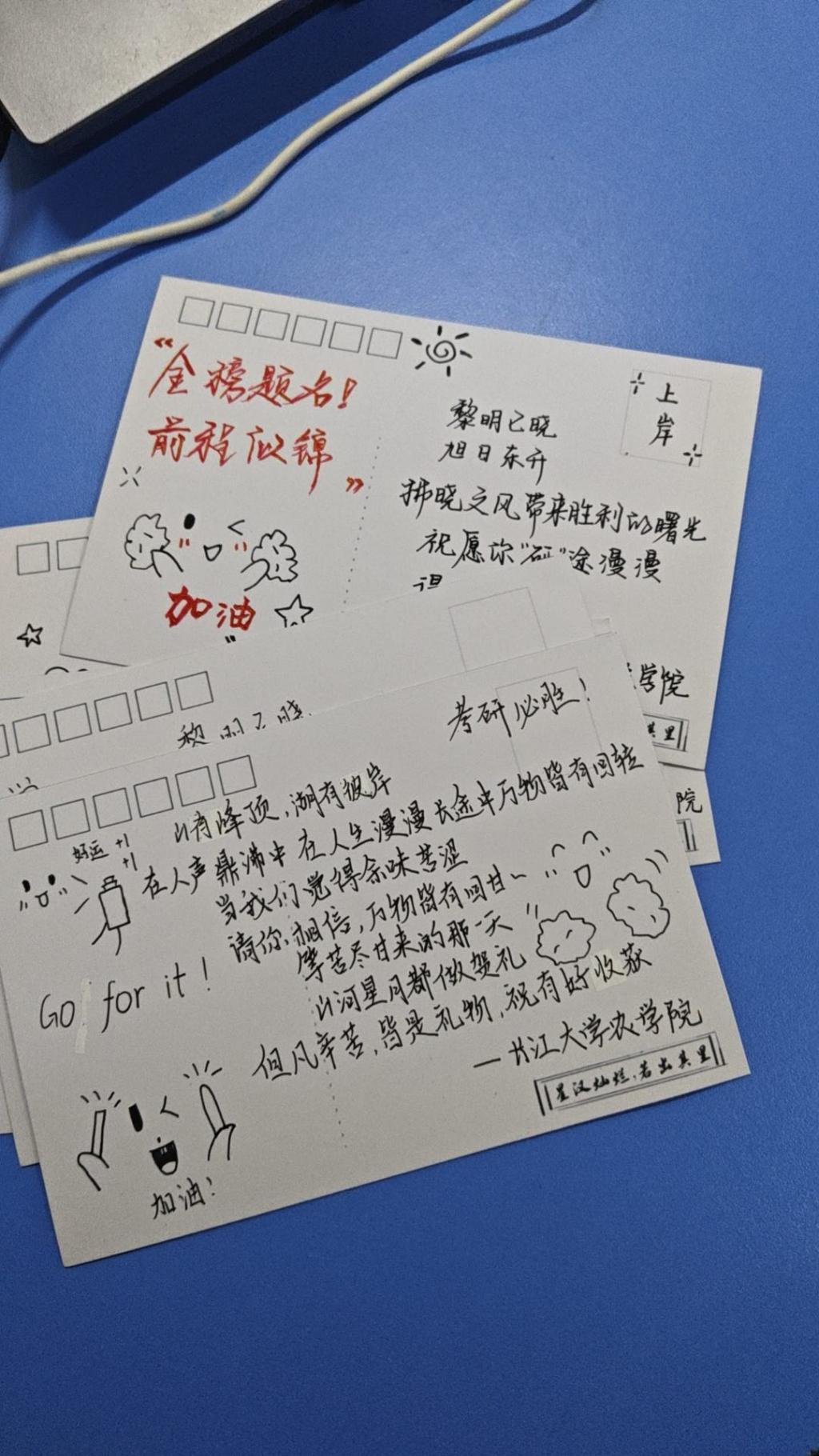 活动尾声,暖心物资发放环节将氛围推向高潮。学院精心筹备的考研物资逐一送到学子手中,实用的文具资料袋、保温水杯承载着学院的贴心关怀,而由学院团委员工会成员手写的祝福卡更显温情,一笔一画间满是学弟学妹们的真挚祝愿与美好期许。现场学子们纷纷表示,此次活动不仅缓解了考前的紧张情绪,更坚定了备考的信心与决心,未来将以更饱满的状态冲刺考研,用优异成绩回报学院的关心与厚爱。