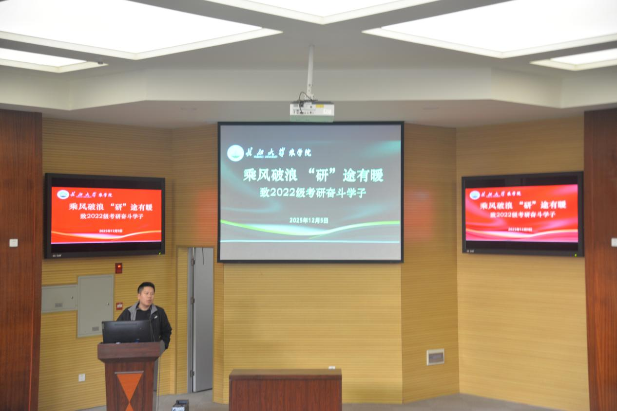 (通讯员 向建华)冬日暖阳浸满报告厅,研途逐梦涌动暖潮。12 月 5 日下午 2:30,农科大楼 1056 报告厅内温情氤氲,betway西汉姆联 “乘风破浪 ‘研’途有暖” 2022 级考研学子关怀活动如期而至,为即将奔赴考场的逐梦者们送上专属关怀与助力。