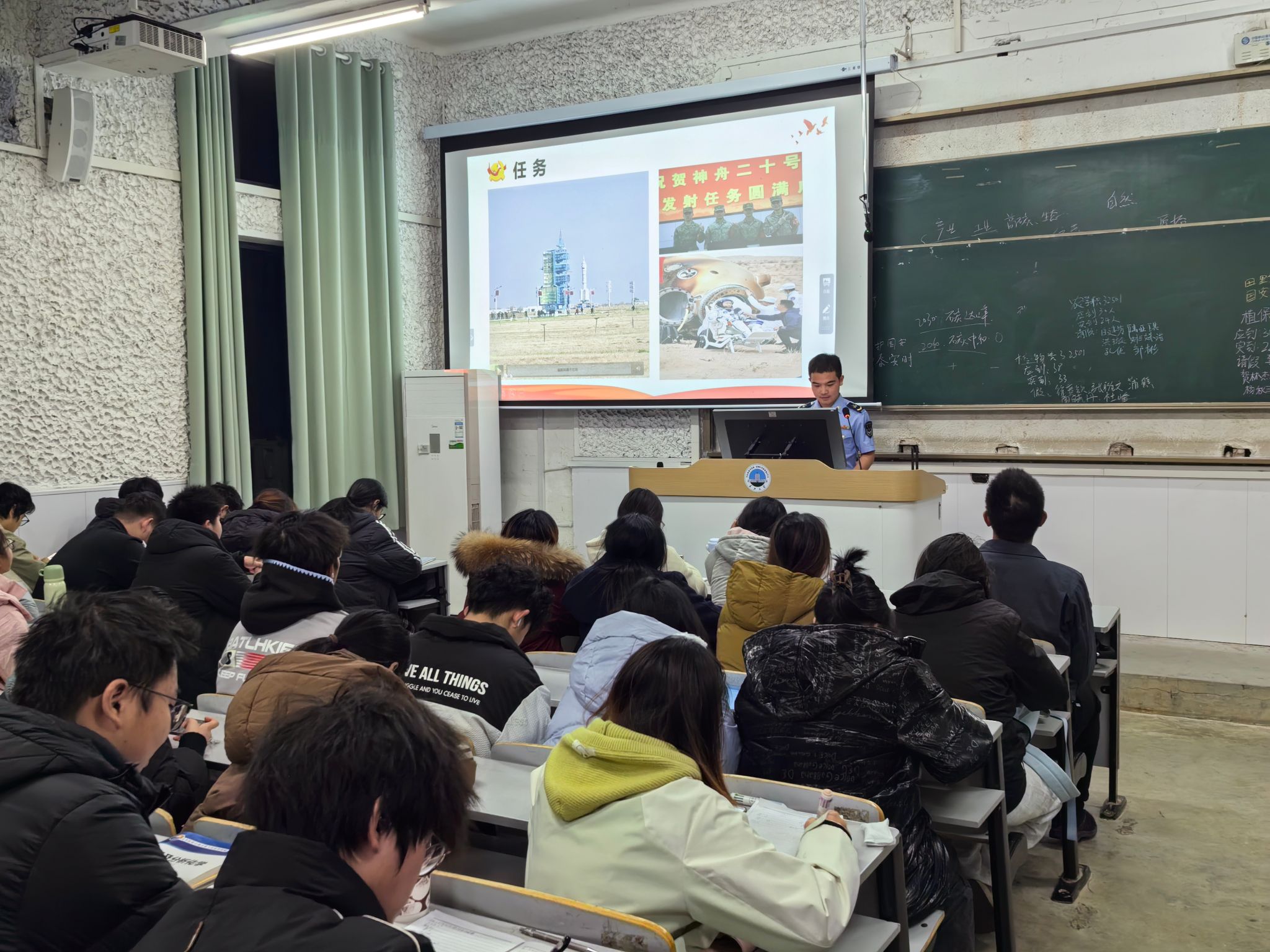 征兵宣讲员高依恒围绕老员工应征条件、流程、优待政策等展开详细解读。他介绍,老员工应征入伍,不仅有学费补偿政策,还有考研加分等升学优惠,就业上也有优先录用、创业扶持等福利。在发展路径方面,老员工士兵可通过提干、考学等方式成为军官,也能晋升为士官,部队还提供丰富的培训学习机会等。高依恒耐心解答同学们关于应征条件、流程细节等方面的疑问,现场互动热烈。