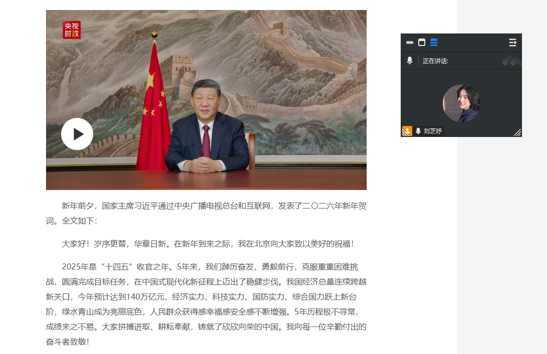 活动中,各班级研究生逐字逐句研读了习近平总书记2026年新年贺词,深刻领会“奋斗创造历史,实干成就未来”的时代号召;系统学习了中央经济工作会议关于高质量发展的部署要求,重点研读了《求是》杂志发表的《扩大内需是战略之举》《学习好贯彻好党的二十届四中全会精神》等重要文章,准确把握“十五五”时期经济社会发展主要目标与新思想、新论断。同时,同学们围绕教育强国建设部署、湖北省委十二届十一次全会精神及特色高水平大学建设要求等内容展开研讨,结合能源安全、粮食安全、长江大保护等专业研究方向,同学们表示要将个人发展融入国家战略与区域建设大局,以学术所长服务发展需求。