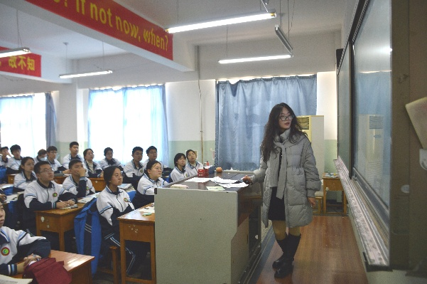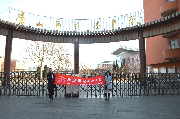 图为 农资卓32501班纪抒含在唐山市海港中学开展宣讲活动