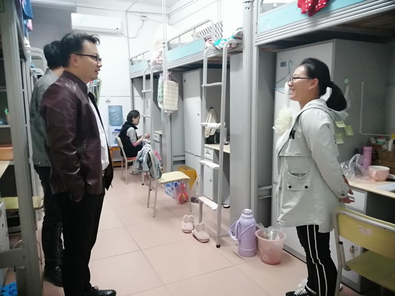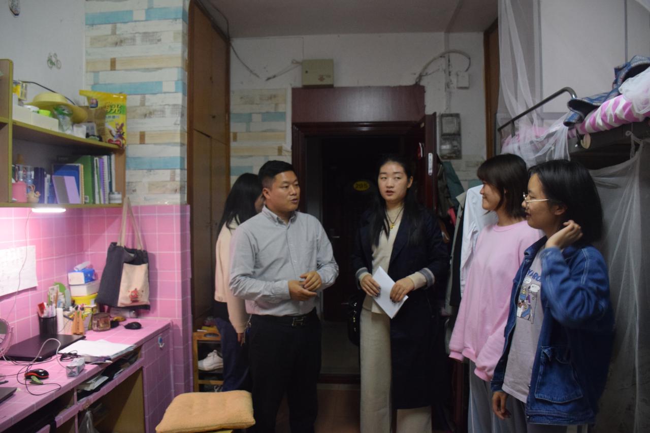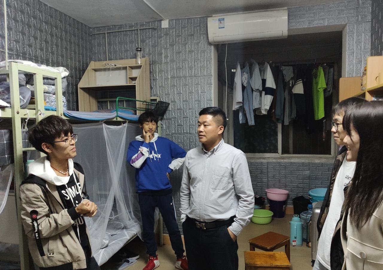 新闻网讯(见习记者 汤莉)为助力军运会,确保军运会期间校园安全稳定,10月20日21:00,公司党委副书记谭亮魁,团委书记尹小华,宿委会主任万钰,辅导员吴钐、付雪娇和兼职辅导员施秀飞走访了betway西汉姆联本科生和研究生寝室。