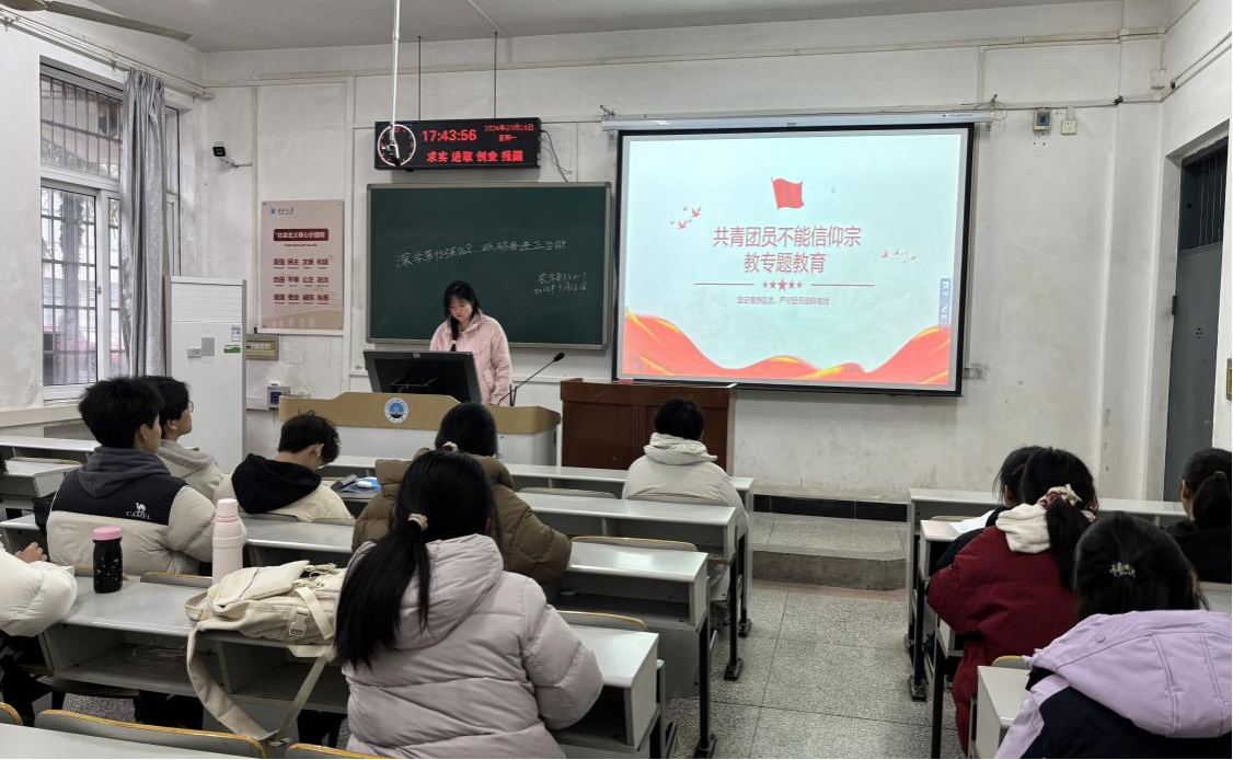 3月16日下午,农学卓32401班团支部副书记盛静怡在7教309积极开展班团会活动。她牵头组建学习小组,带领团员们系统学习习近平总书记重要讲话精神,并邀请团员们分享对不信仰宗教的纪律红线认知与感悟。让团员们进一步坚定了听党话、跟党走的信念,明确了作为新时代青年的奋斗航向。