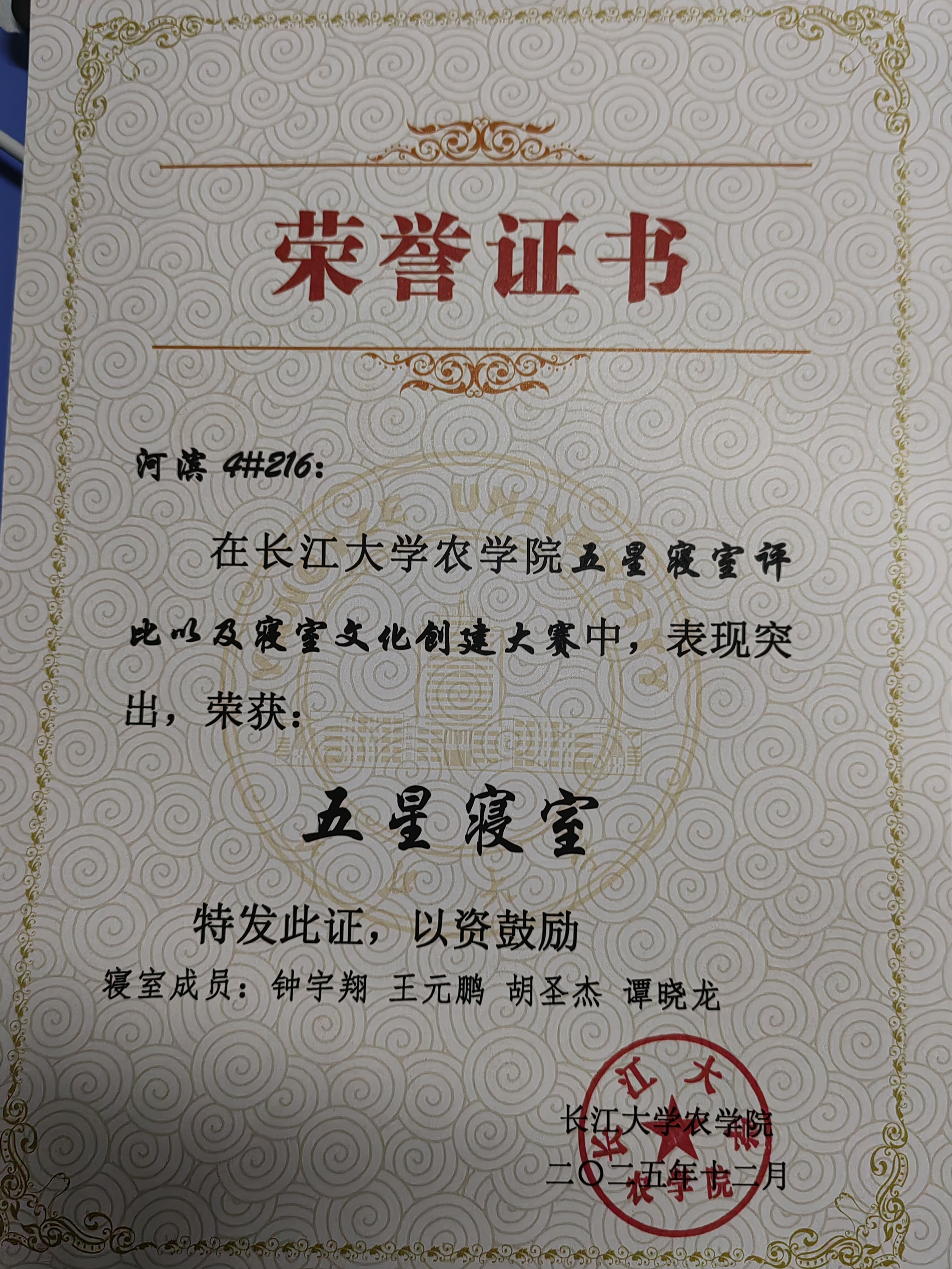 学风是寝室的灵魂,216寝室全体成员秉持勤学善思、互助共进的理念,营造出浓厚的学习氛围。成员们上课全勤、专注听讲,课后相互督促、共享资料,针对课程难点共同探讨、答疑解惑,形成了“一人进步、全员带动”的良好局面。在学业考核、专业竞赛与资格考证中,寝室成员屡获佳绩,多人取得优异成绩,用实际行动践行勤学笃行的求学态度,让寝室成为学习共进的优质平台。