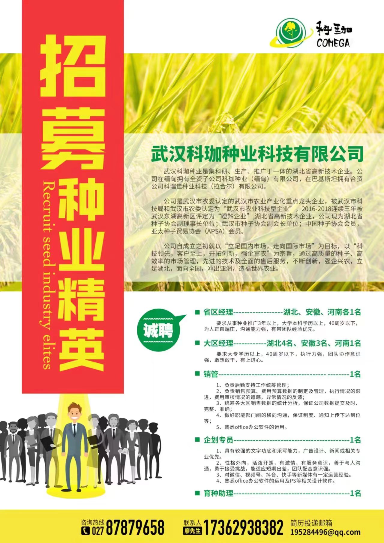 【就业信息】武汉科珈种业科技有限公司招聘公告