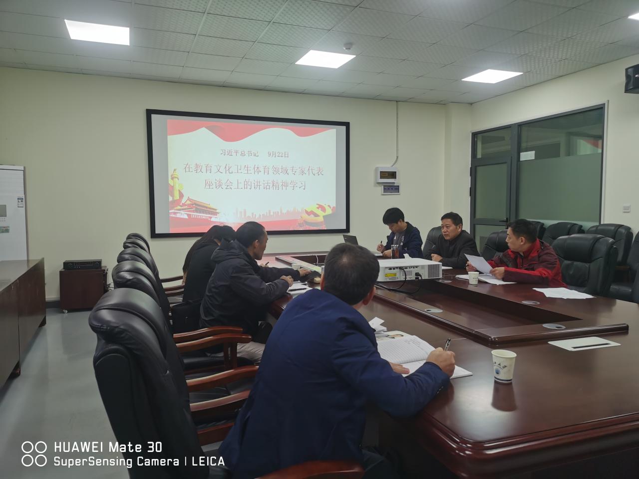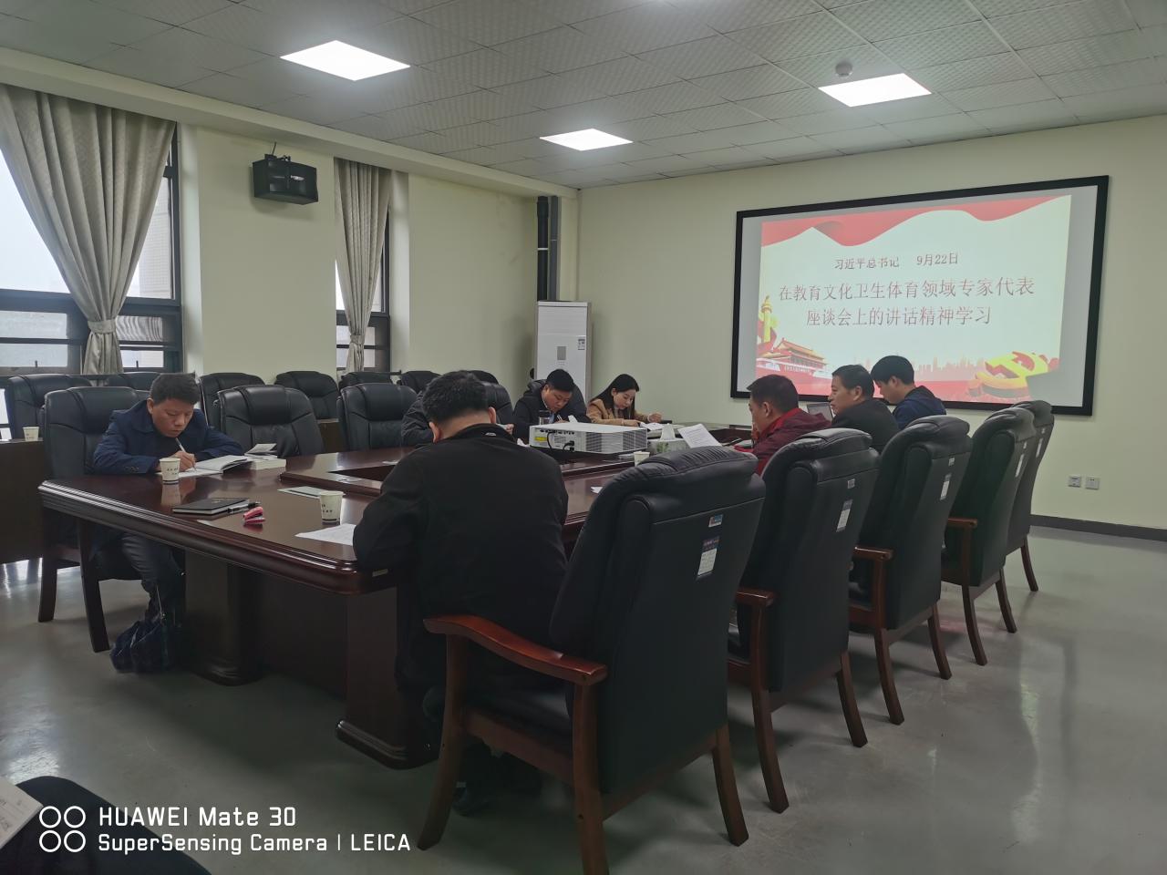 学习会议室上,研究生第一党支部书记刘庆首先带领中心组学习了习近平总书记召开教育文化卫生体育领域专家代表座谈会上的讲话精神。从培养担当民族复兴大任的时代新人、把文化建设摆在更加突出位置、大力发展卫生健康事业、加快体育强国建设四个方面进行了领学。