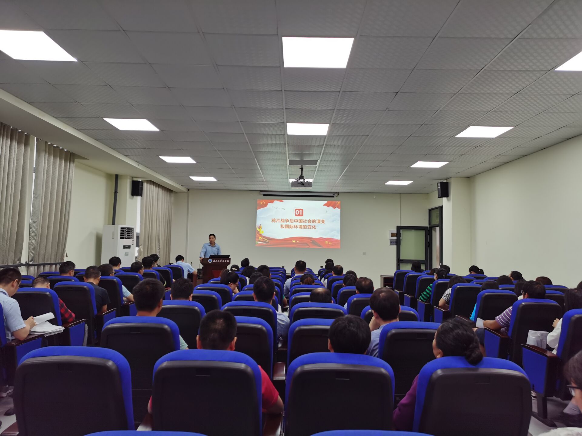冯发明书记以《中国共产党的诞生及早期革命活动》为题,分别从鸦片战争后中国社会的演变和国际环境的变化、中国共产党的诞生、中国共产党早期革命实践等三大方面进行详细讲解。冯书记指出,我们要不忘初心,牢记使命。中国共产党诞生于民族危难之时,一开始就把民族振兴,大众解放当作使命,并进行了艰苦卓绝,持之以恒的斗争,最终取得胜利!牢记党的历史,才能坚定跟党走的信念。中国共产党的领导是中华民族伟大复兴的希望,是广大人民群众美好生活的保障!