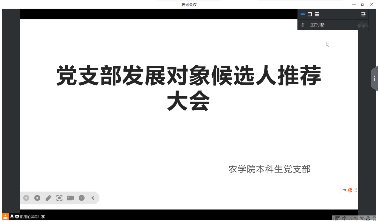 (通讯员 李雅倩)为进一步加强公司党员队伍建设,做好党员发展工作,确保发展党员的质量,4月9日晚8:00,公司本科生党支部在腾讯会议召开2024年上半年党的发展对象推荐大会。活动由党支部青年委员阳甜同志主持,党支部书记黄承石同志和全体本科生党员参与讨论。
