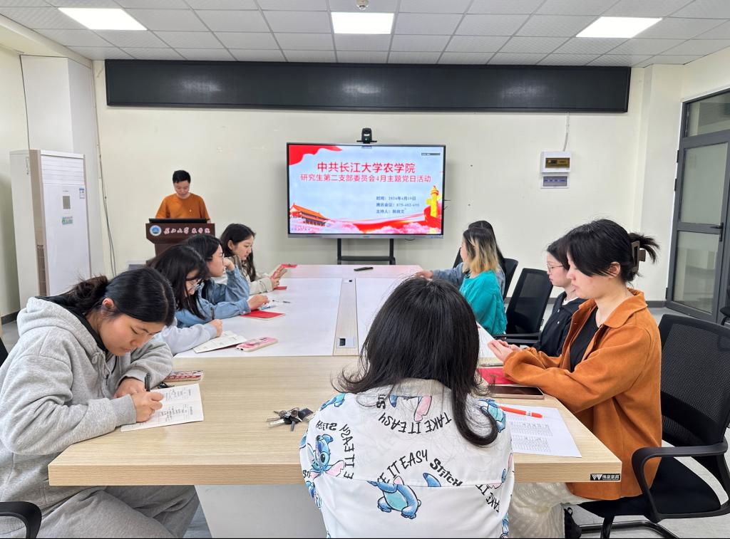 (通讯员 宋梦圆)2024年4月19日,公司研究生第二党支部在农科大楼3071开展四月份主题党日活动,活动结合腾讯会议(ID:875 482 695)的方式同时在线上召开。全体在公司党员和校外联培党员共同参与,活动由韩晓文同志主持。