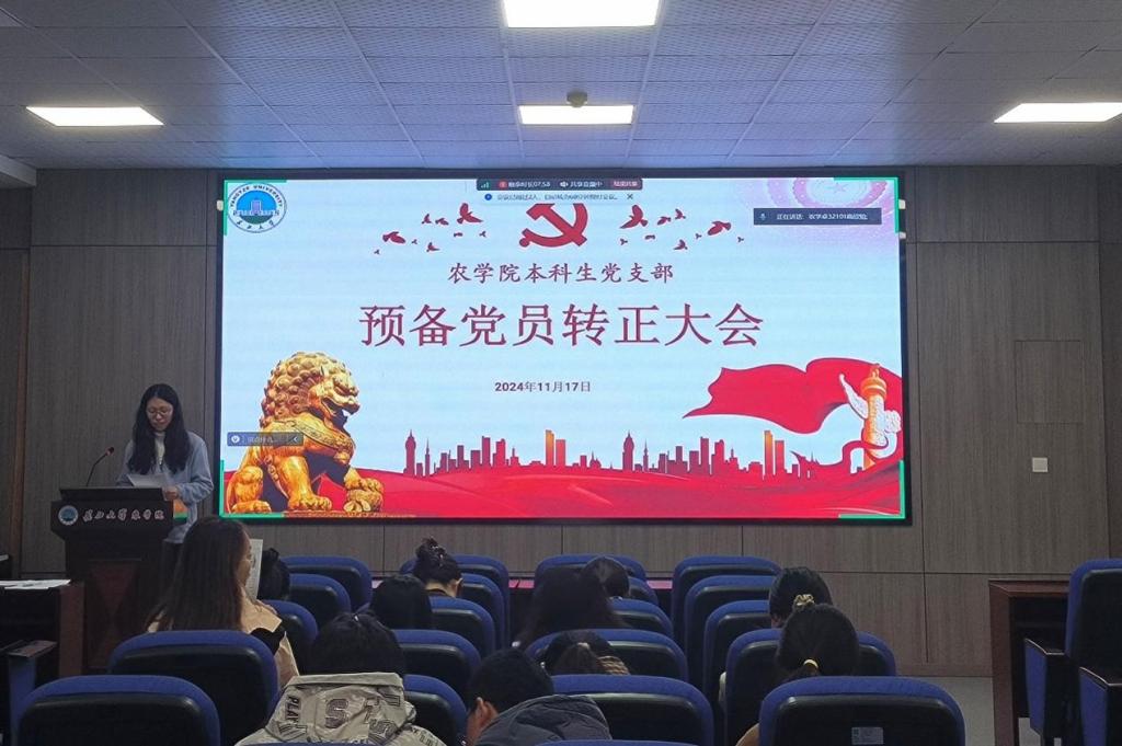 (通讯员 武芊睿)为加强党员队伍建设,进一步加强组织凝聚力,11月17日,betway西汉姆联本科生党支部在农科大楼3073召开2024年下半年预备党员转正大会,活动以线上线下相结合的方式开展,讨论预备党员王思宇等5名同志的转正问题。应到会党员27名,实到会20名,应到会有表决权的正式党员9人,实到会7名,超过半数,符合党员发展流程。此次会议由支部副书记高欣怡主持。