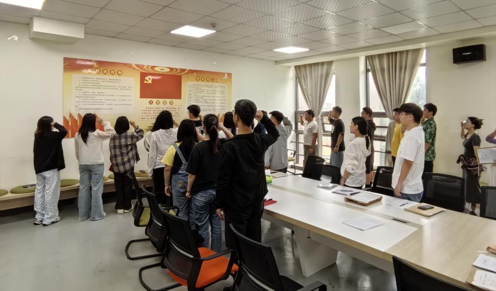 活动伊始,张银带领全体党员重温入党誓词,罗丽娅简要说明本月党支部党费收缴情况。在理论学习环节,陈静静逐字逐句研读《中国共产党章程》第五章内容,让党员们对党章的丰富内涵和精神实质有了更为深刻的理解。唐海洋以《部分高校违反中央八项规定精神问题》为题,通过剖析典型案例,为全体党员讲授了一堂生动的党课,为党员们敲响了廉洁自律的警钟。朱嘉怡领学了习近平总书记在湖北考察改革发展工作时的重要讲话精神,重点传达了“坚定不移全面深化改革开放,脚踏实地推动经济社会发展”的重要指示。郑杰鑫、林雪儿结合学习工作实际,围绕“作风建设永远在路上”专题开展研讨交流。