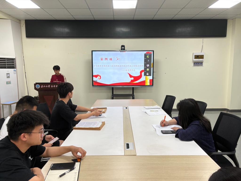 最后,支部书记林香亮向全体党员提具体要求,中央八项规定精神是必须长期坚守的铁规矩、硬杠杠。作为研究生党员,既要深刻领会其重大意义,树立正确的价值观和行为准则,又要清醒认识当前在思想认识、学术研究、日常生活中存在的苗头性倾向性问题,如对规定学习不深入、学术急功近利、享乐主义等;要切实通过加强学习、坚守学术诚信、践行勤俭节约等措施,将中央八项规定精神落到实处,争做新时代优秀研究生党员,为学校发展、党和国家的事业贡献力量。