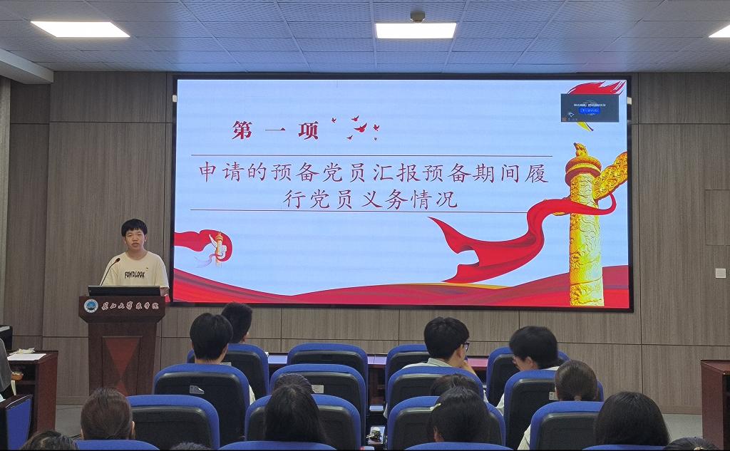 会议按照预备党员转正的组织程序进行。第一项由李慧明等13名预备党员依次进行自我陈述,针对自己在预备期间的学习、工作和生活情况进行总结与反思,并宣读转正申请,表达加入中国共产党的决心和信心。第二项,入党介绍人介绍预备党员考察情况,并就是否同意其转正发表意见;第三项,与会正式党员进行无记名投票,经统计,支部党员一致认为13名同志在考察期间表现良好,具备成为中共正式党员资格,通过李慧明13名同志的转正申请。