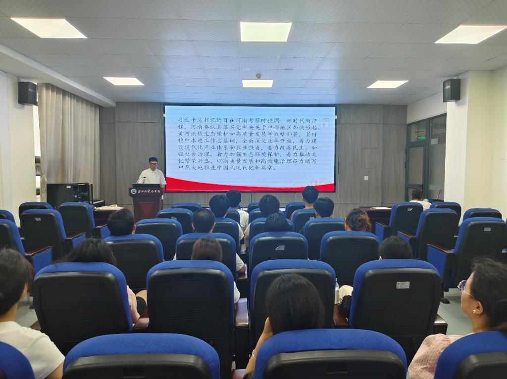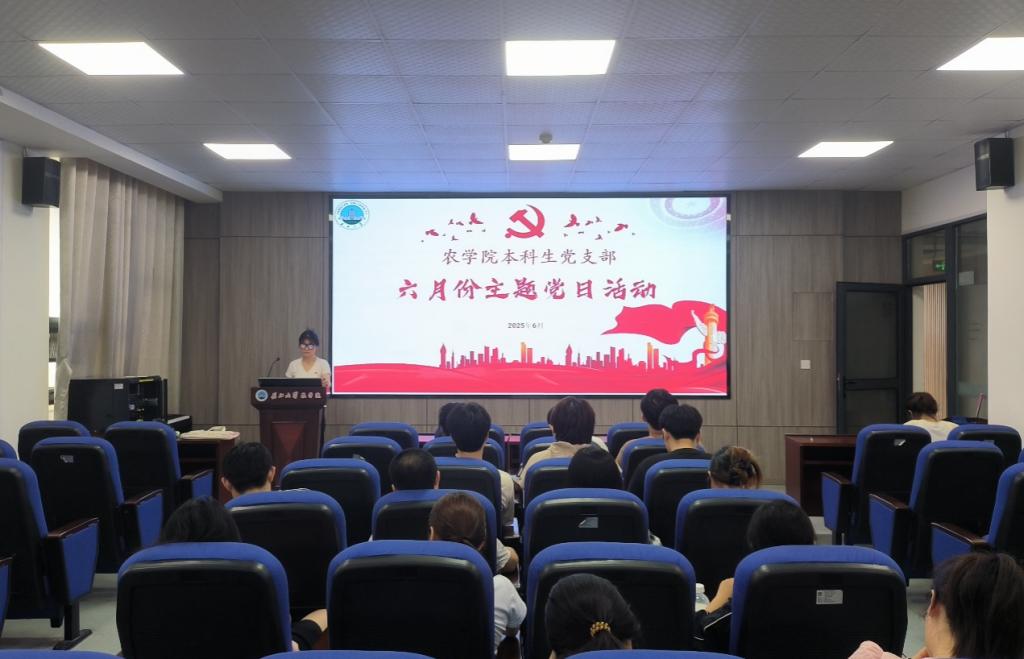 随后,贾生乐同志围绕“中原大地推进中国式现代化新篇章”开展微党课,领学习近平总书记在河南考察时关于“洪范八政,食为政首”的讲话,强调要加强耕地保护,抗牢粮食安全责任,延伸现代农业产业链条。最后他呼吁身为农科学子的我们,肩负着保障国家粮食安全的使命,要以所学深耕沃野,用科技赋能良田。