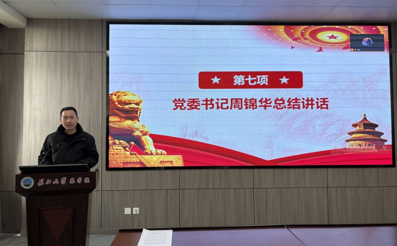 最后,党委书记周锦华总结讲话,他充分肯定了本次主题党日活动的成效,并对研究生党员提出殷切期望。他强调,身为研究生党员要加强政治理论学习,强化作风建设和纪律建设,以身作则,切勿弄虚作假、不讲诚信;强化担当作为和责任落实;立足科研生活实际,主动冲锋在前,带头钻研新知识、新技术,用自己的实际行动,为学院的繁荣发展添砖加瓦,竭尽全力推动科学技术向更高水平迈进。