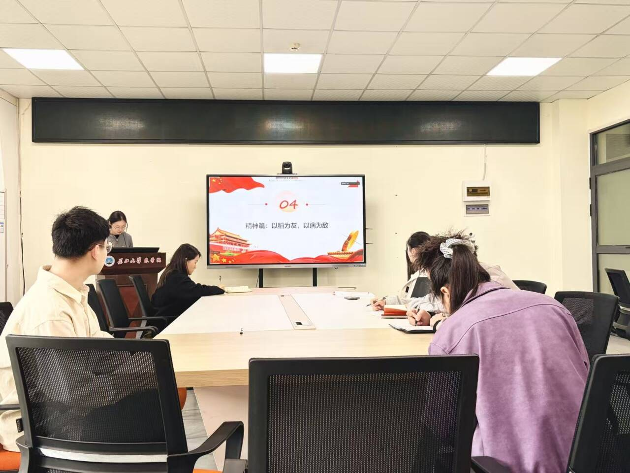 最后,支部书记付雪娇作总结讲话。她强调,本次主题党日活动紧扣 “以正确政绩观谋划‘十五五’、推动高质量发展” 主线,学习扎实、研讨深入,达到了统一思想、凝聚共识的效果。她要求全体党员,要切实把学习成果转化为推动工作的实际成效,以正确政绩观引领科研方向、锤炼过硬作风,锚定农业团队建设目标,立足岗位勇挑重担,在学校一流团队建设和服务乡村振兴的实践中践行初心使命,贡献青年党员的智慧与力量。