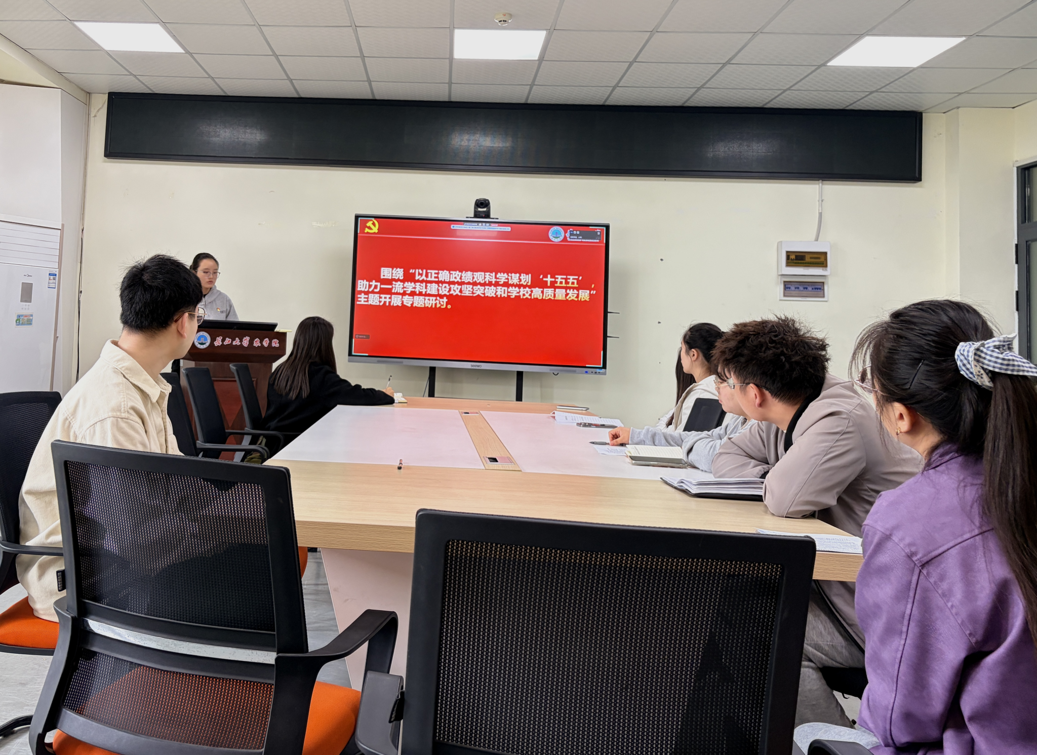 在交流研讨环节,与会党员围绕 “以正确政绩观科学谋划‘十五五’,助力一流团队建设攻坚突破和学校高质量发展” 主题,结合各自学习分享内容展开深入讨论。王覃丽、郝陈静子、张旭阳同志表示,践行正确政绩观,要锚定“为民兴农”初心、立足岗位根基、勤学善思、实事求是,拒绝浮躁,强化功成不必在我的担当,迎难而上,潜心科研攻关,服务好“三农”。