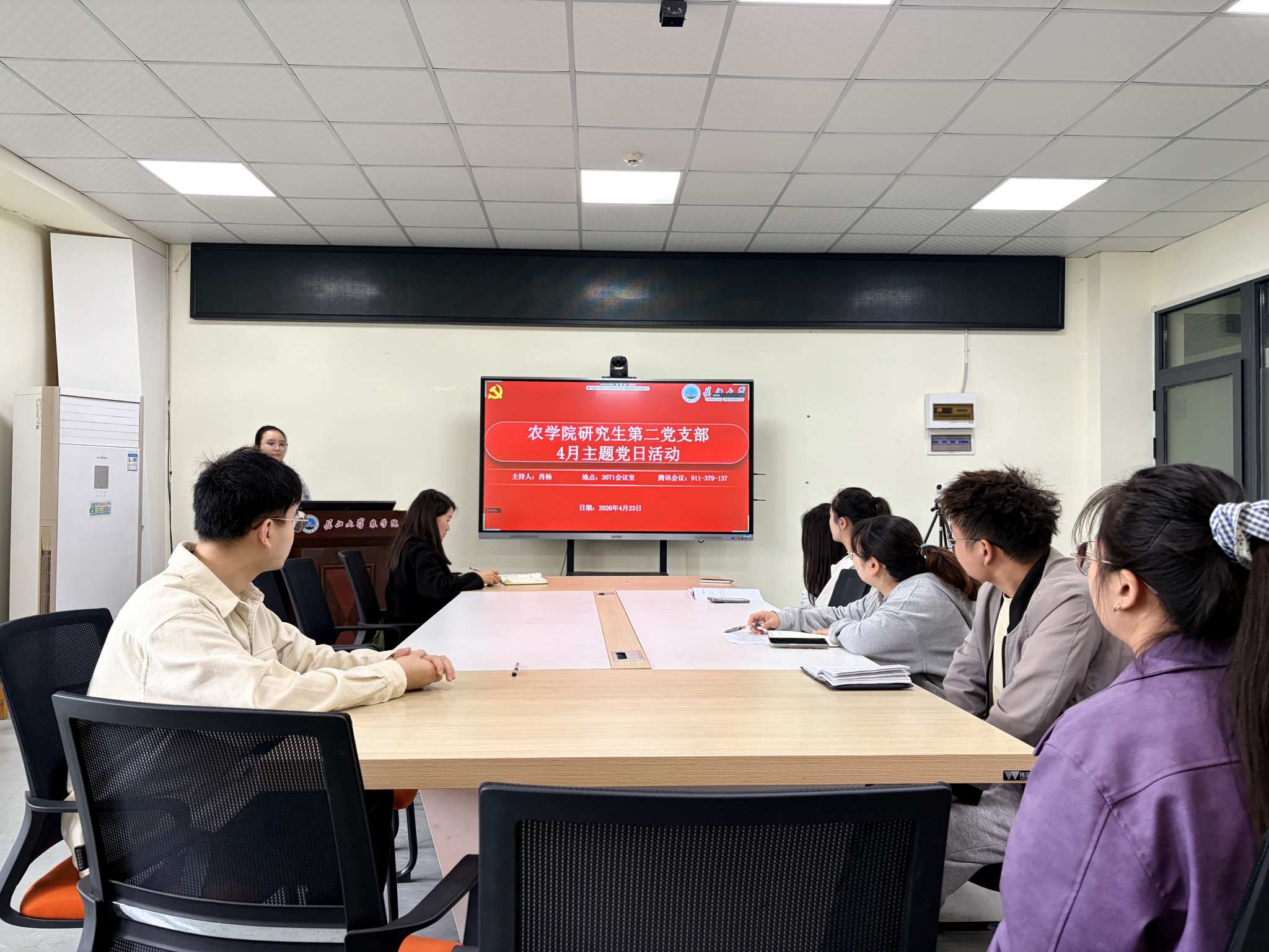 (通讯员 李嘉萍)4月23日,公司研究生第二党支部在农科大楼3073会议室开展4月份主题党日活动,活动通过腾讯会议的方式同时在线上召开。全体在公司党员和校外联培党员共同参与,活动由肖扬同志主持。