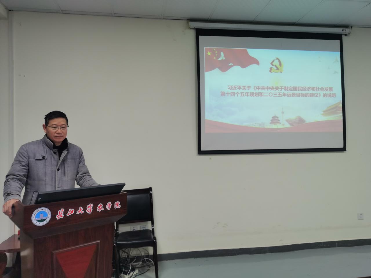 为全面贯彻十九届五中全会精神,深入学习十九届五中全会中的“新发展”理念,12月24日下午3时,公司党委书记冯发明在农科大楼3073会议室给全体党员教师分享了学习贯彻党的十九届五中全会精神体会,对《国民经济和社会发展第十四个五年规划和二0三五年远景目标建议》进行全面解读。