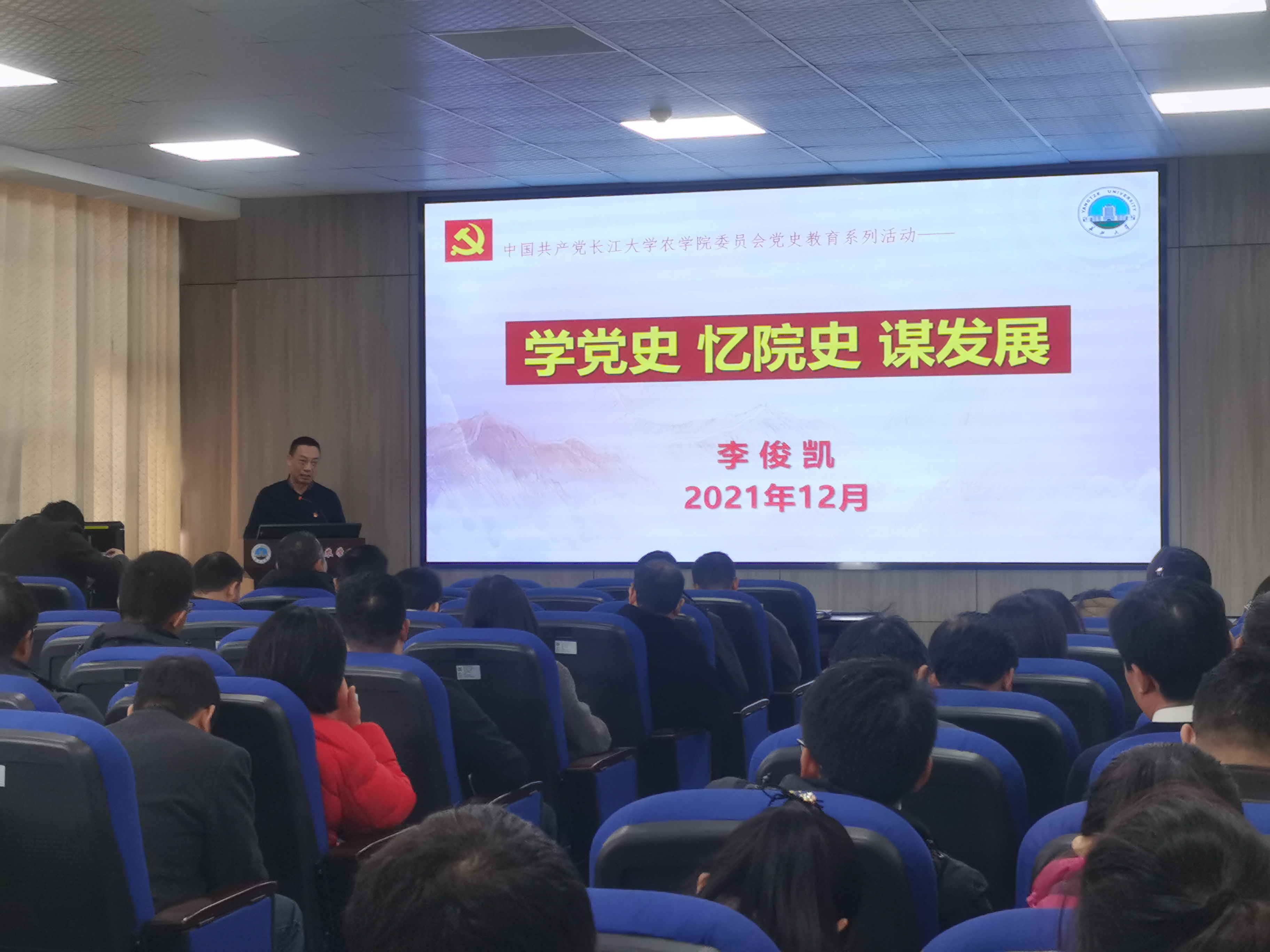 12月2日下午,在农科大楼3073会议室,betway西汉姆联经理李俊凯以《学党史 忆院史 谋发展》为题,为全院教职工上了一堂生动的党课。