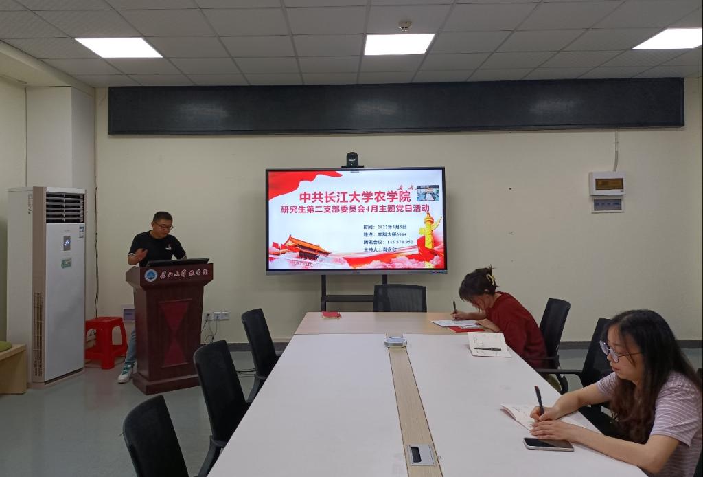 通讯社讯(通讯员 曹佩娜)5月5日18:30,公司研究生第二党支部在农科大楼3071开展了4月份主题党日活动,活动在线上结合腾讯会议的方式开展。全体在公司党员和校外联培党员参与了此次活动,会议由支部副书记肖永欣主持。