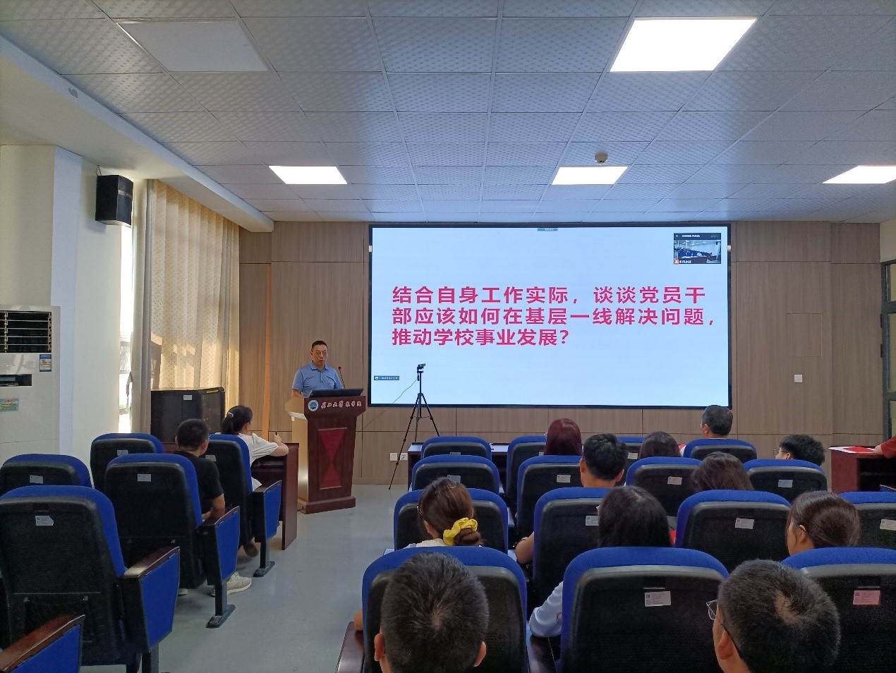 接着,全体党员以“结合自身工作实际,谈谈党员干部应该如何在基层一线解决问题,推动学校事业发展?”为主题展开研讨。邵四海副经理表示,为党员同志提出两点要求:一、做好表率,身先士卒,认清身份;二、不断前行,科研、政治理论齐下,实事求是,解决难题。侯聪书记谈到,党员同志要严于律己,以身作则,发挥模范作用,走进本科生团、党支部,从思想、学习以及生活上给予他们帮助和引导。