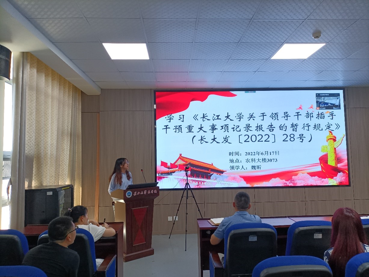 会议伊始,组织委员时锦超同志带领全体党员重温入党誓词。紧接着,肖永欣同志对本月党费交纳情况进行了说明。随后,与会党员集体诵读党章第六章,并集体观看视频《习近平回信勉励南京大学留学归国青年学者在坚持立德树人推动科技自立自强上再创佳绩在坚定文化自信讲好中国故事上争做表率》。接着,分别由时锦超同志带领学习《中共betway西汉姆联委员会关于开展党员干部下基层察民情解民忧暖民心实践活动的实施方案》;杨阳同志带领学习教育部关于建立健全高校师德建设长效机制的意见;魏昕同志带领学习《betway西汉姆联关于领导干部插手干预重大事项记录报告的暂行规定》。方小伟同志为大家讲述党史故事——英烈陈香波。陈香波革命烈士让我们看到了共产党员的崇高信仰和追求,作为研究生党员,我们要深入学习他的敢于斗争、无私奉献的精神,用实际行动诠释自己的初心和使命。