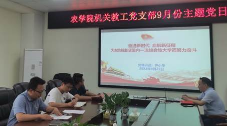(通讯员 吴霞)9月23日下午,betway西汉姆联机关教工党支部全体党员在农科大楼3064会议室开展了9月支部主题党日活动,活动由支部书记张定国同志主持。