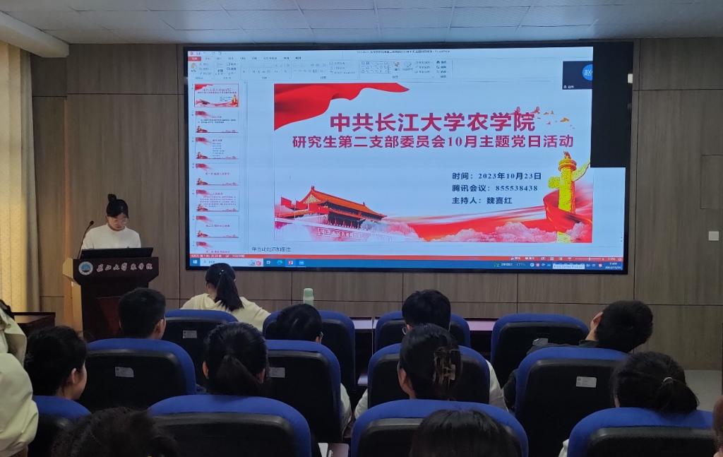 (通讯员 宋梦圆)10月23日下午3点,公司研究生第二党支部在农科大楼3071开展十月份主题党日活动,活动结合腾讯会议(ID:855 538 438)的方式同时在线上召开。全体在公司党员和校外联培党员共同参与,活动由魏喜红同志主持。