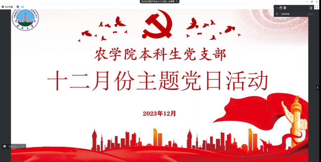 (通讯员 徐志鹏)12月29日晚上17:00,公司本科生党支部在腾讯会议开展十二月主题党日活动,支部党员应到44人,实到44人,本次活动由支部党员姜月兴同志主持。
