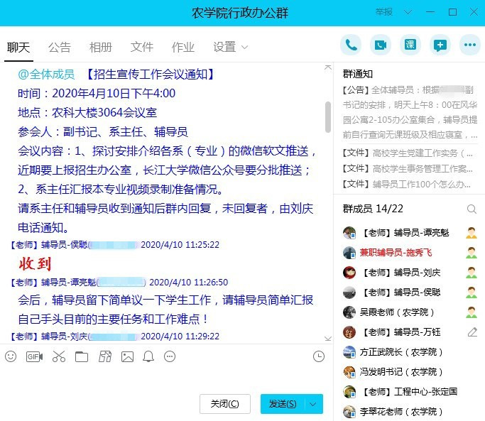 各系主任介绍了目前相关工作的进展以及难点,与会人员进行了深入的谈论,大家一致认为。虽然今年招生宣传工作遇到了新情况、新问题,但只要大家通力合作,必将形成强大合力,并圆满完成学院招生宣传工作。